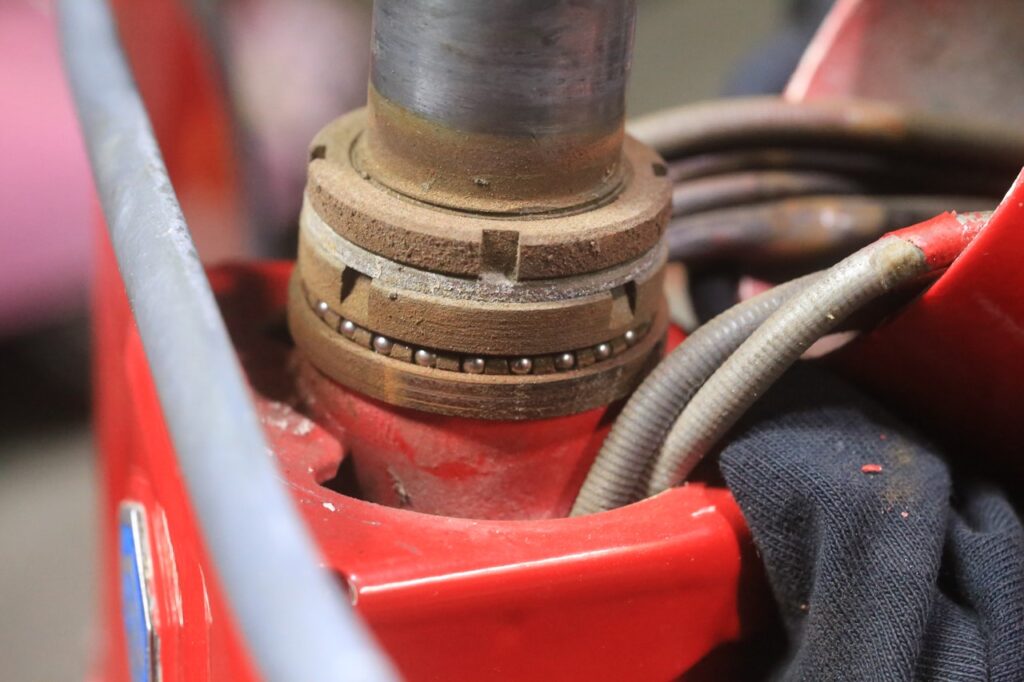 一度バラシて洗浄、新しいグリスで組んであげると、スルッと動いて乗りやすくなります。