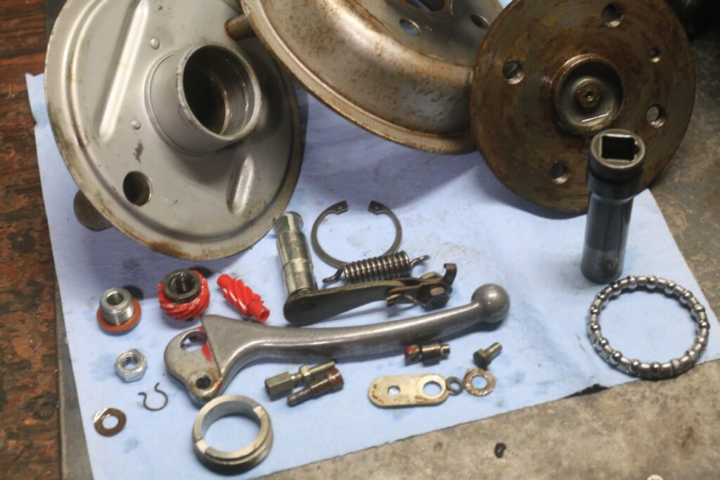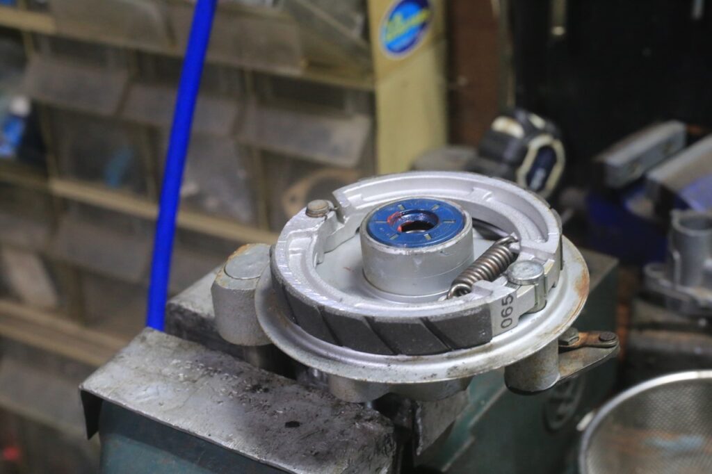 キーキー鳴くとの事だったフロントブレーキ、グリス切れだけではなく、新車時に組まれていたまま、一度も交換されていなかったブレーキシューが硬化していたのも原因ですね。