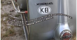 本日の作業目標はオーバーホールが終わったP200Eのエンジン積み込み、そして始動。 などと思っていたのですが有難い事にご来店して頂いたお客様のベスパの整備3台やらせて頂いたらタイムオーバー。 せめて積み込む前の準備を終わ […]