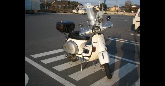 記念に写真をパシャリと撮ったと同時に、自分のベスパはスタンドかかった状態のままズルズル滑っていき、それを見た自分は焦って追いかけるも足元ツルツル。