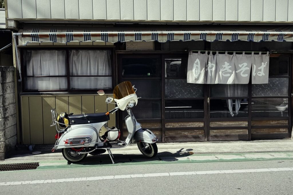 取りあえずは、焼きそばとベスパ。
