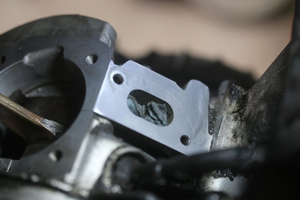 アルミのクランクケースを削ってしまい、取り付け面がガタガタに摩耗していた事。