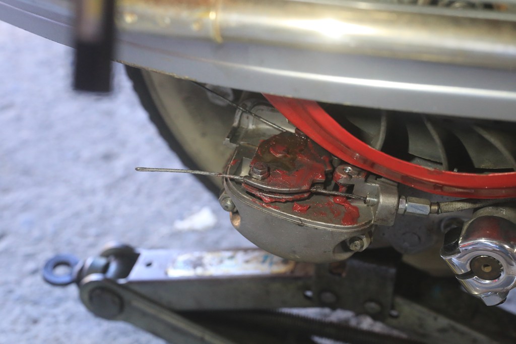 今朝は 自分のRALLY200の試運転からスタート。試運転というよりはキャブレターセッティング。この間の定休日、 オリジナルエンジンを降ろし、組んだまま放置していた実験…