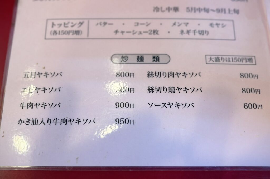焼きそば屋さんではなく俗にいう町中華という括りですね。