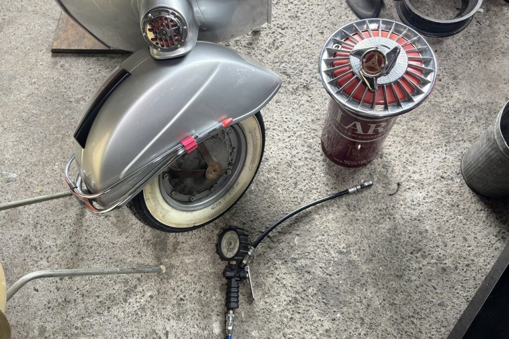 タイヤの空気圧をチェック。