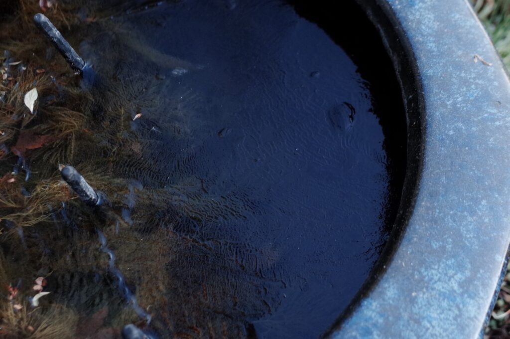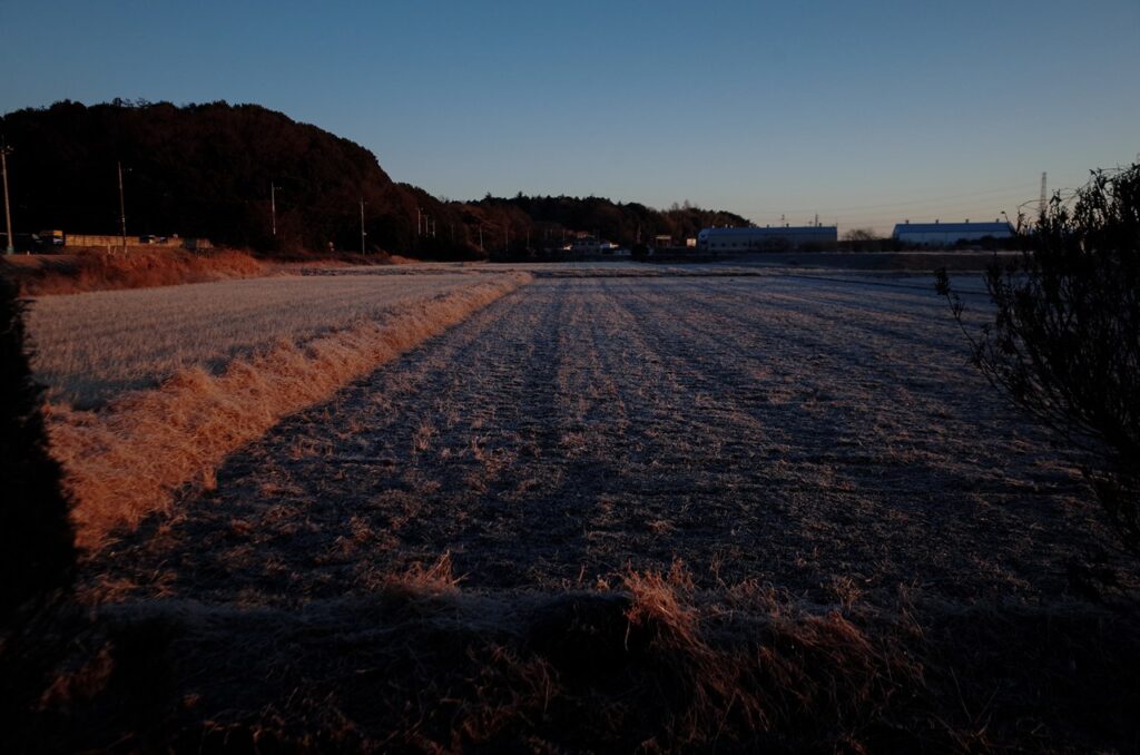 ビオトープは凍てつき、店の前は霜が降り真っ白け。