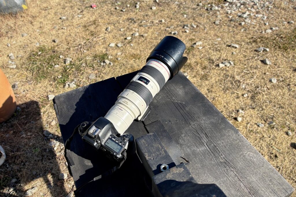 EF70-200mm F2.8L USMというレンズにエクステンダーEF2×というエクステンダーとかいう焦点距離を倍にするアダプターを付けてパシャリ。
