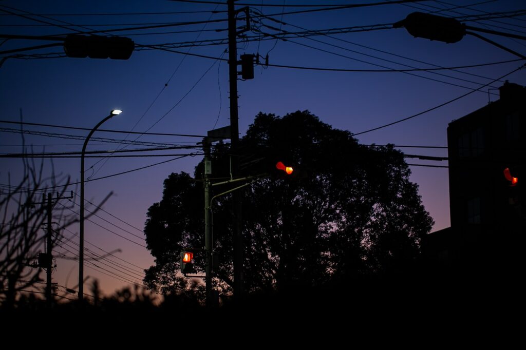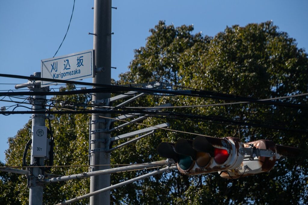 木の手前の信号の看板まできれいに写る。