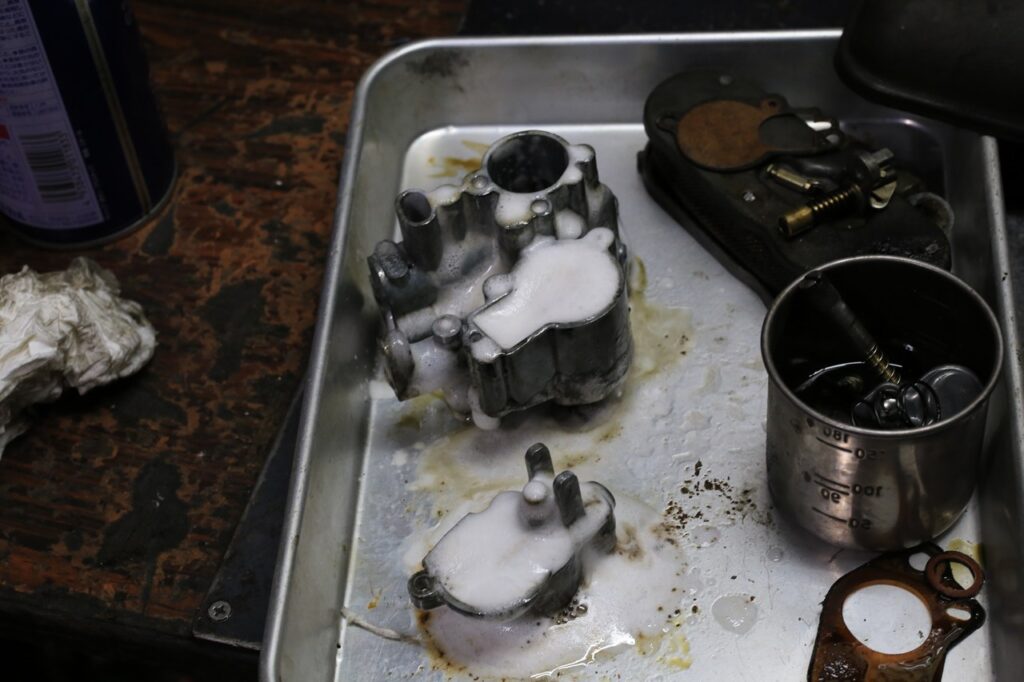 長期不動なP200Eのキャブレターオーバーホール作業。