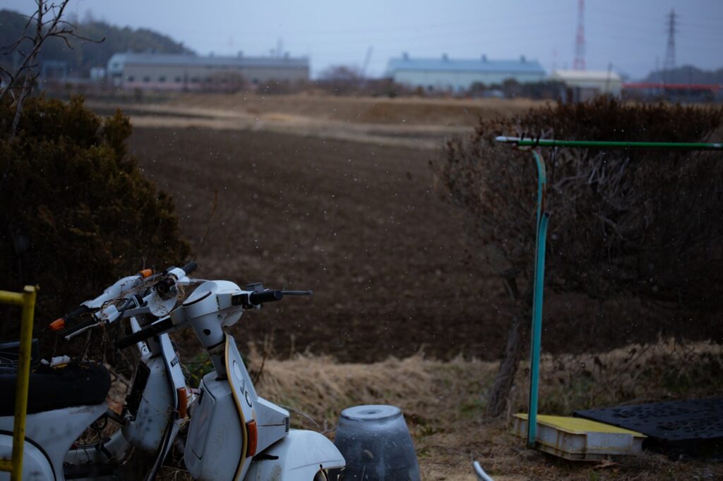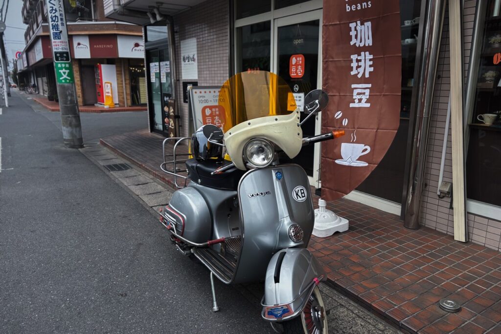 オープン前、ベスパに乗って