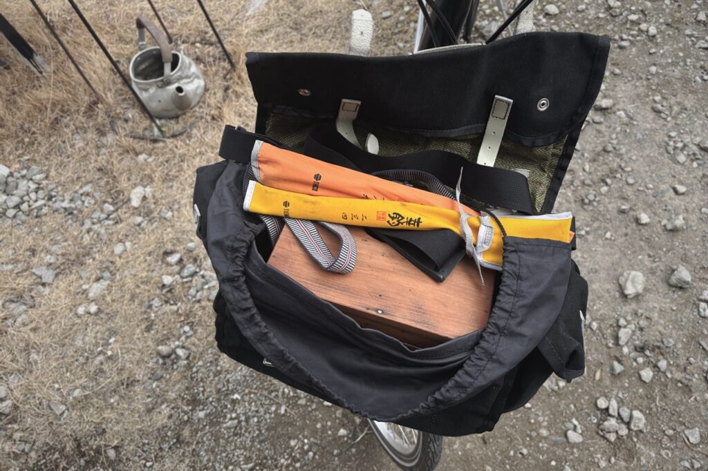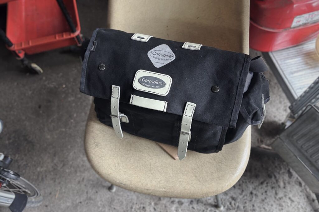 本来、ランドナー用だったキャラダイスのサドルバッグは、釣りバッグに。