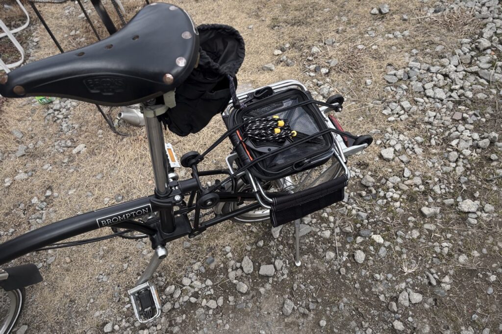 リアキャリアに積んだ椅子なども段差で動いたりしないので、これにて、ブロンプトンの釣り仕様は決定。