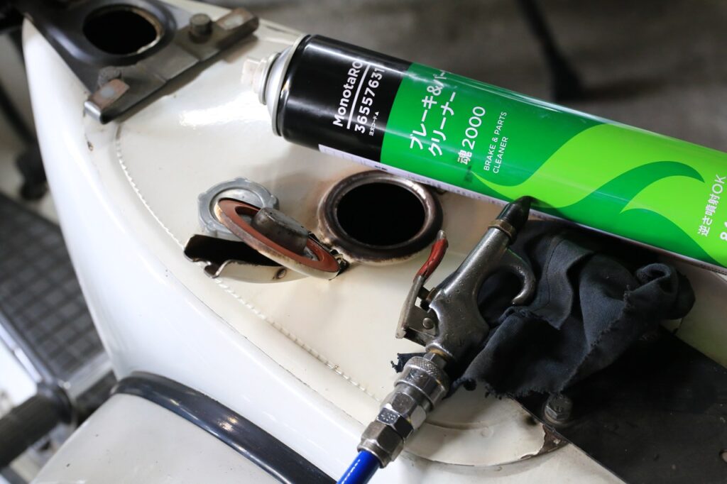 その汚れが穴をふさいでしまうので、これを機に、そこもパーツクリーナで洗浄してスッキリ。