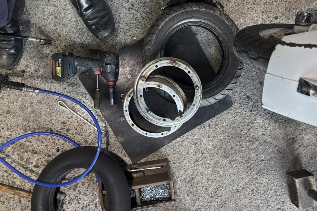 そして、リアブレーキパンク状態で入ってきた車両は、今の自分の腰では押すことができない。