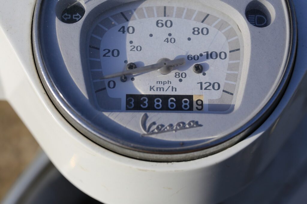 これが、ドラムブレーキのベスパからディスクモデルに乗り換えた方だったりすると、折角効くフロントブレーキなのに、リアブレーキメインで乗るドラムモデルの乗り方が沁みついていて、逆に、3万キロ走ってもフロントのブレーキパッドが減っていない、なんて方も多かったり。