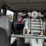 オイルタンクから漏れたオイルが車体の中に溜まっていたので放出中なPX200FL。
