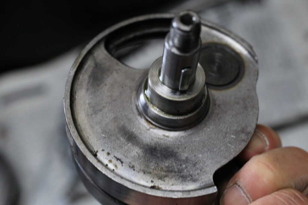 写真撮り忘れたけど、クランクシャフトベアリングがダメになりかけているタイミングで、フライホイールの内側にコイルが軽く接触した痕跡がありました。