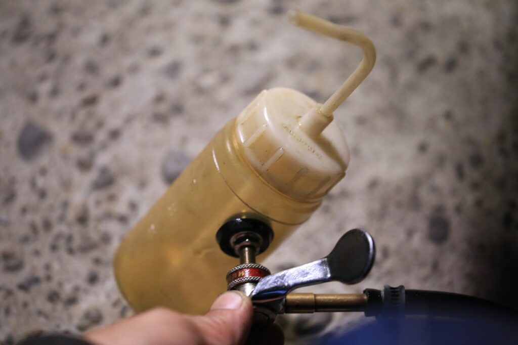 エアポンプでミッションオイルを圧入しているんですが、その圧がかかってオイルが垂れてきたようで。