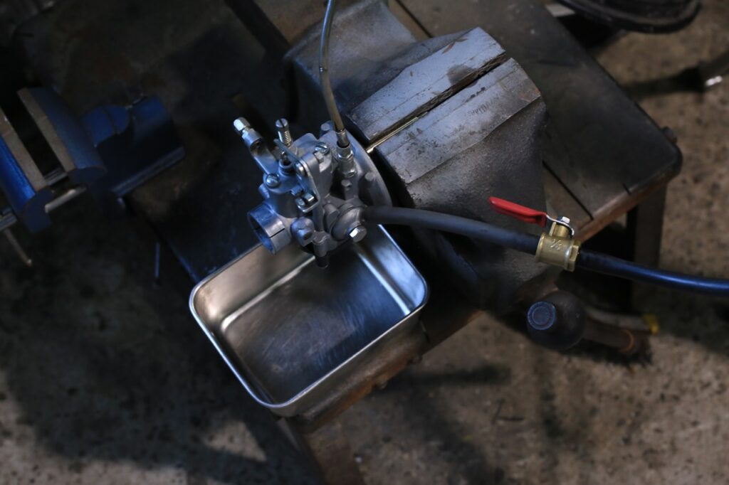 組み上げたキャブレターをオーバーフロー耐久テスト。