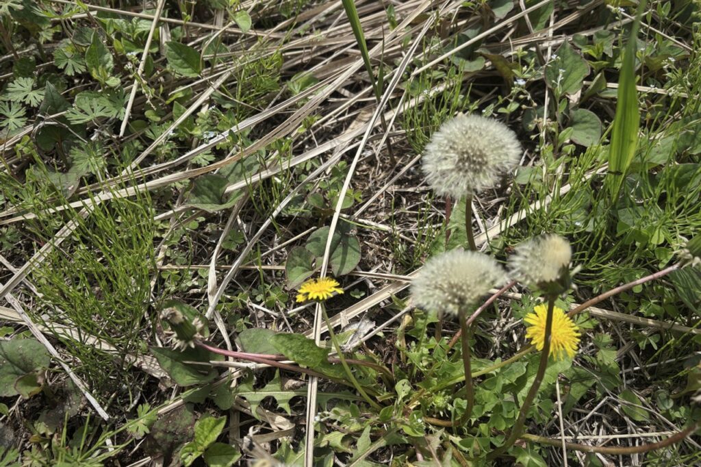 タンポポの綿毛があちらこちらに