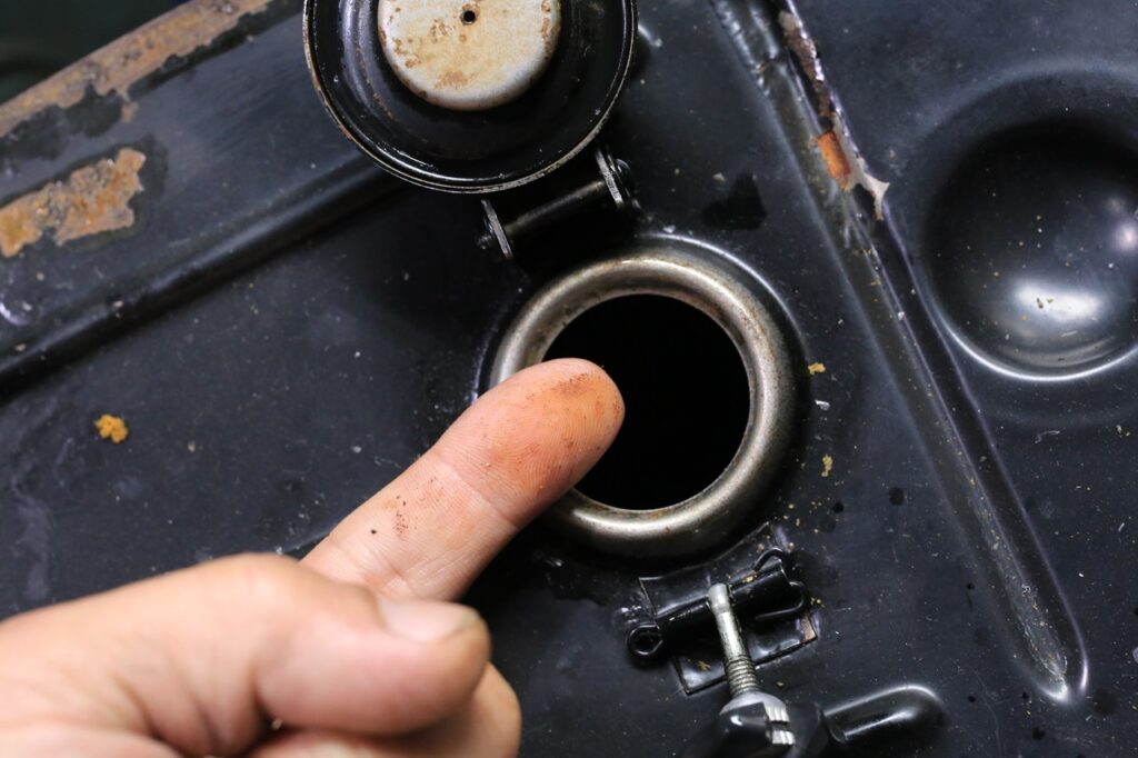 タンクの方は、固形化したガソリンを溶かして錆取り。
