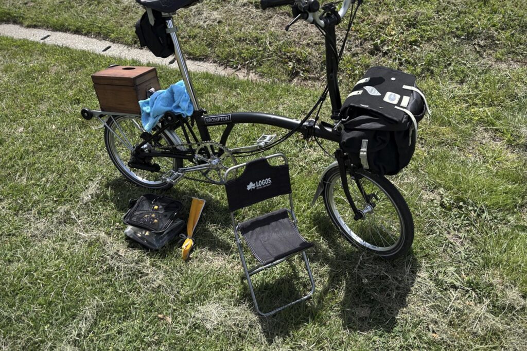 最近来店されたお客様が、ベスパと自転車でキャンプツーリングに行かれているので何か良い椅子はないか聞いてみました。