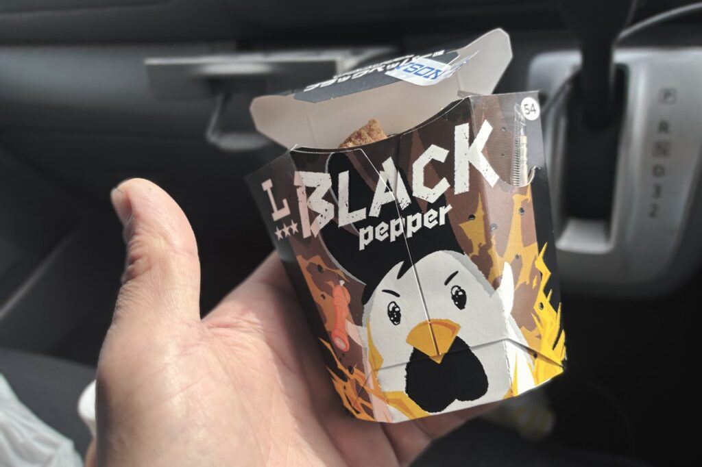 口に入れて一噛み、その直後から口内に広がるブラックペッパーの強めな刺激。