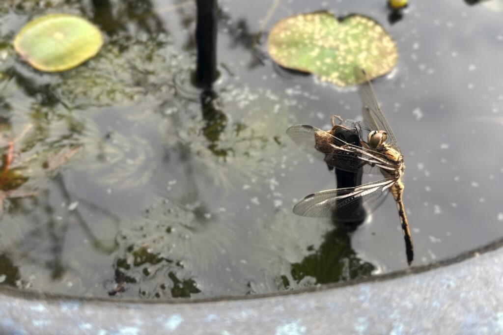 ビオトープの住人だったヤゴが羽化して旅立っていきました。